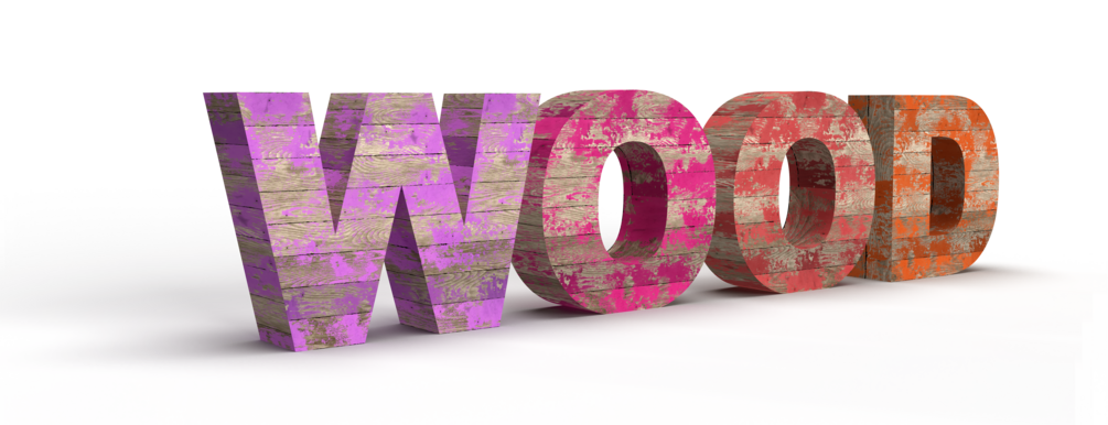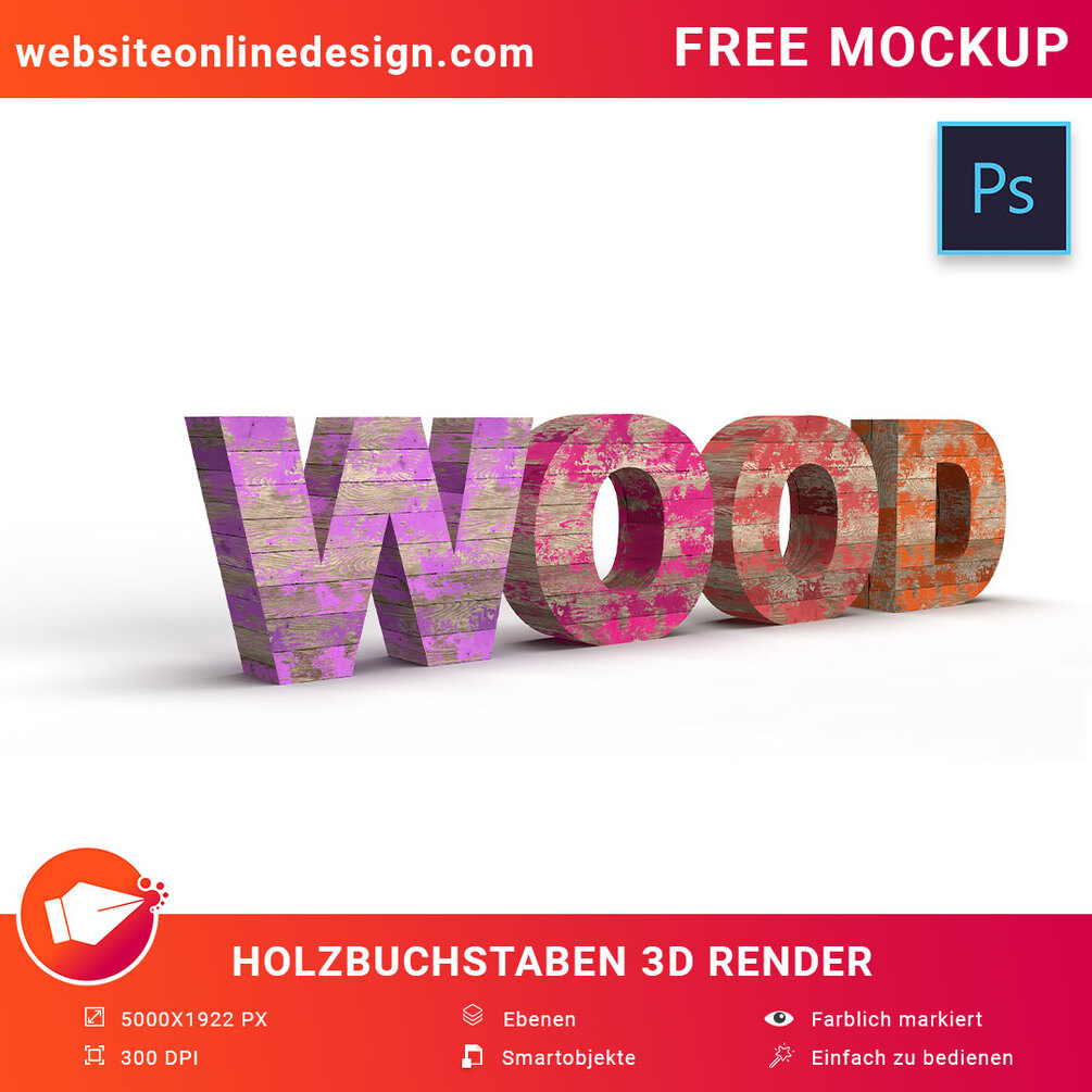 Holzbuchstaben 3D Render "WOOD". Hole dir die kostenlose Photoshop Datei für dein Projekt.